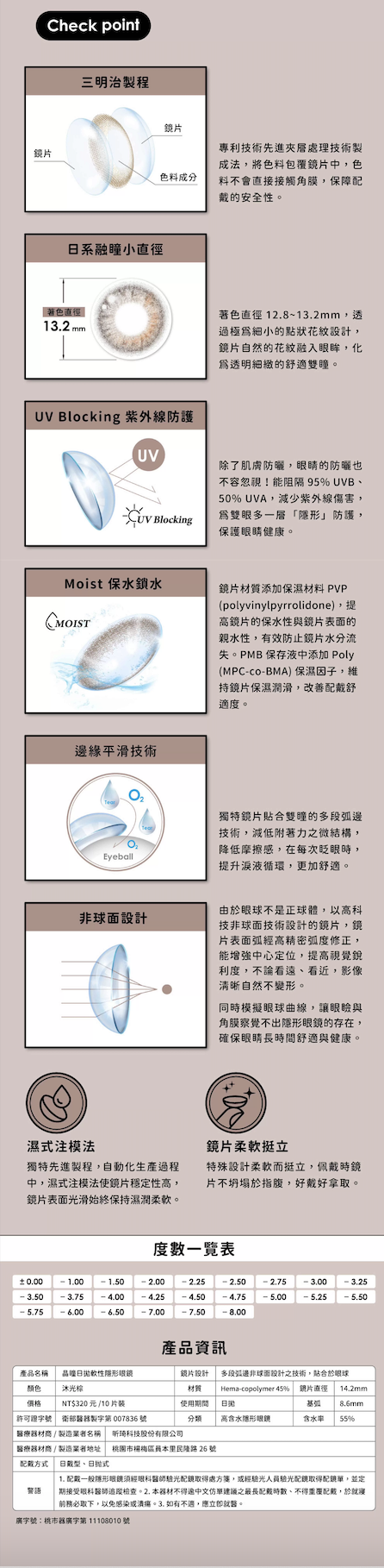 度數 | -0.00 ~ -6.00D(0.25D 步長)