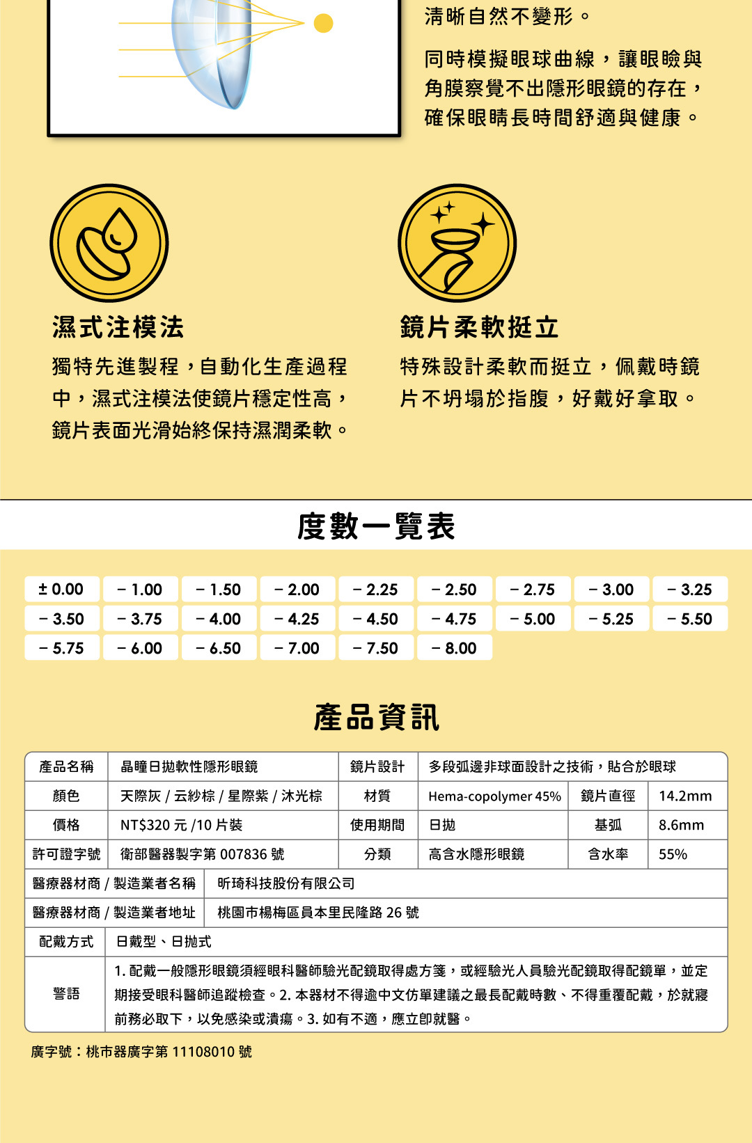 ◎本產品為每日拋棄式隱形眼鏡,使用完畢請直接丟棄,勿重覆使用。